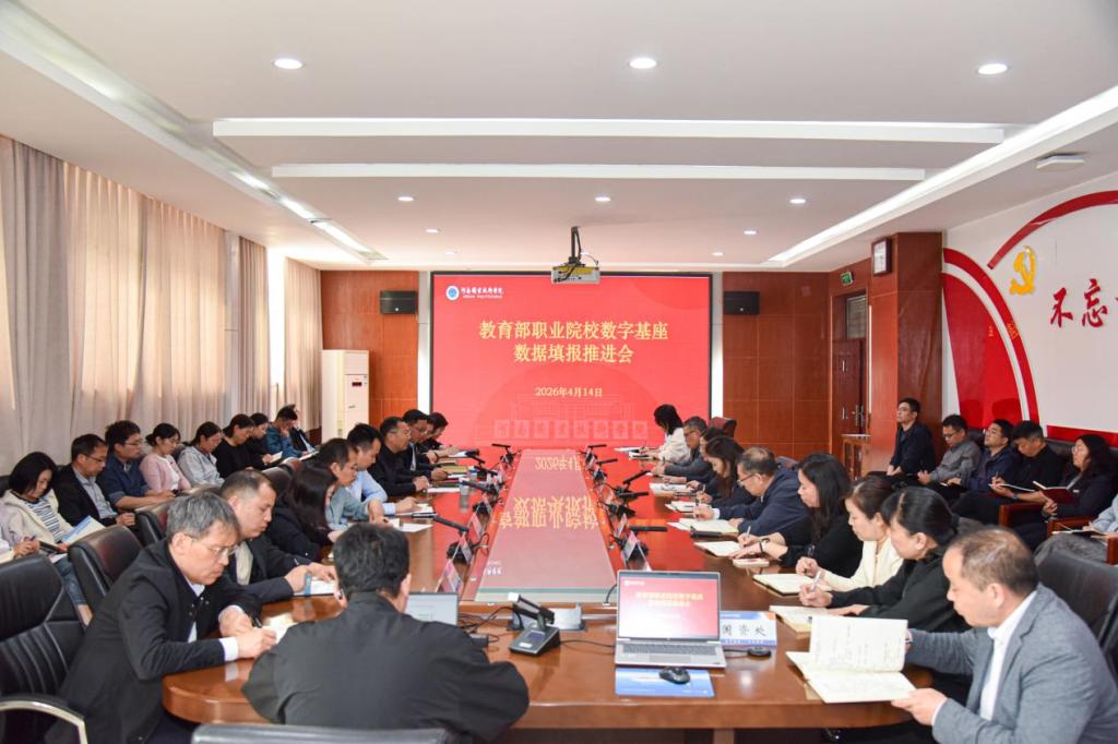 4月14日下午,我校在勤业楼332会议室召开职业院校数字基座数据填报推进会。校党委委员、副校长朱永宽出席会议并讲话,相关部门负责人、数据填报员及信息中心工作人员参加会议。